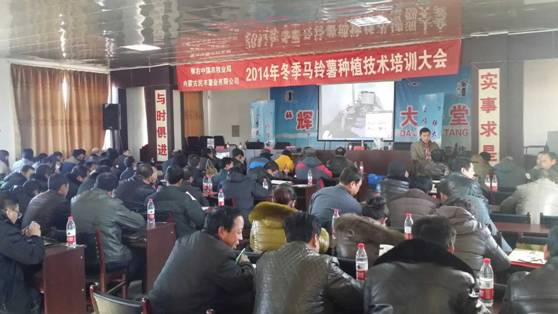 2014年12月23日至25日,內蒙古民豐薯業(yè)有限公司聯(lián)合察右中旗農牧業(yè)局共同舉辦的2014年馬鈴薯種植培訓大會于察右中旗召開。村支部書記,主任、代理商、種植戶共計239人參加了培訓。中旗農業(yè)局、種子管理站、鄉(xiāng)(鎮(zhèn))分管農業(yè)的領導出席了會議。察右中旗電視臺進行了現(xiàn)場采訪報道。