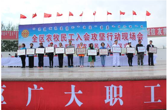 6月14日,全區(qū)農(nóng)牧民工入會攻堅行動現(xiàn)場會暨烏蘭察布市農(nóng)牧民工入會儀式在我市舉行。我公司組織30人的方隊參加了入會儀式。期間,自治區(qū)人大常委會副主任、總工會主席杭桂林,自治區(qū)總工會黨組書記、副主席崔明龍,自治區(qū)總工會副主席王麗紅,我市領(lǐng)導(dǎo)張琛、李建平、楊國文、王增強、王國相、于生龍,和各盟市工會分管主席、主管部門部長,各盟市黨委政府所在地的區(qū)(市、旗)總工會主席,各自治區(qū)產(chǎn)業(yè)工會負責(zé)人,自治區(qū)直屬機關(guān)工會工委負責(zé)人,區(qū)總相關(guān)部門負責(zé)人,市各旗縣市區(qū)工會負責(zé)人及部分市直基層工會負責(zé)人100余人來我公司進行了實地觀摩考察。